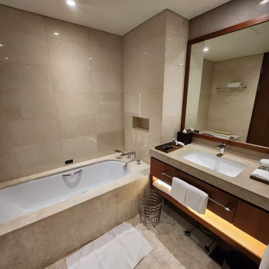 Lobby , Wall callading ,Flooring,Bathtub,Vanity